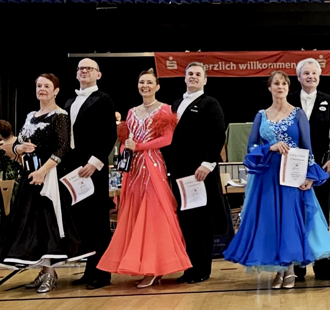 Am 7. Turnier am Saalebogen in Bad Blankenburg standen Petra und Johannen gleich bei 4 Turnieren an der Startfläche. Am 04.10.25 konnten sie sowohl bei den Master III C als auch in II C in großen Startfeldern sehr viele wertvolle Punkte ertanzen. Am 05.10. nach dem „Warm-Tanzen“ in II C wurde ihre gute Performance in ihrer Leistungsgruppe III C mit der Qualifikation für das Finale belohnt und sie freuten sich über reichlich Punkte und die Platzierung.
