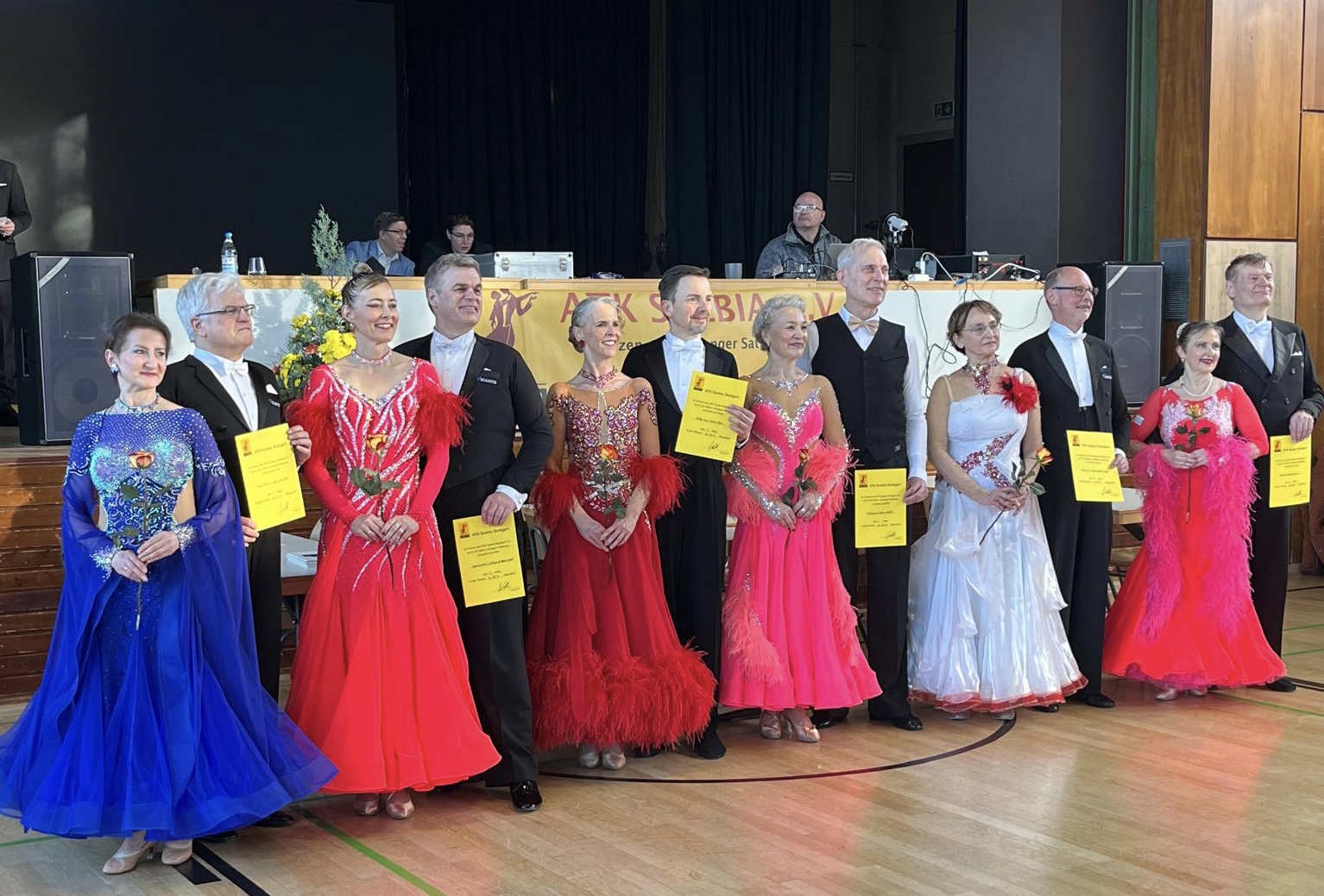 unsere Trainingstanzkollegen, stellten sich an beiden Tagen dem Wettbewerb bei den Master IV A. Am Samstag ertanzten sie sich den 4. Platz, am Sonntag zogen sie an noch mehr Paaren vorbei und wurden auf den 2. Platz gewertet. Zudem konnten sie sich die Goldmedallie Gesamtwertung der Trophy 24 umhängen!